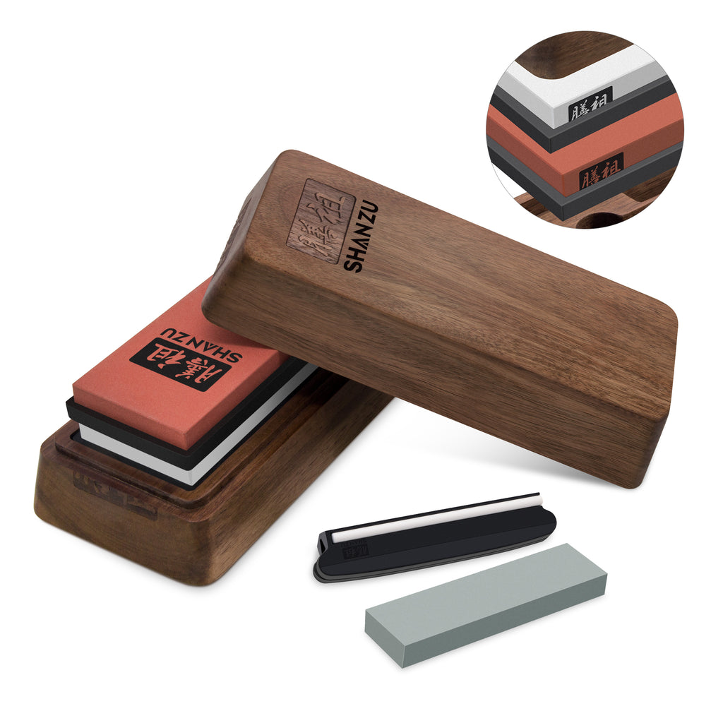 - SHAN ZU Whetstone Set (#1000/#6000 Grit) with Pakka wood storage box