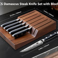 SHAN ZU PRO Series – Ensemble de Couteaux à Steak 7 PCS, Couteaux à Steak Damas avec Bloc