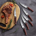 il set di coltelli da chef SHAN ZU è realizzato in acciaio inossidabile giapponese G5 (10Cr15Mov) di alta qualità, forgiato con 5 strati di acciaio laminato. Con una durezza fino a 62 HRC, è resistente all'usura, alla ruggine e offre una robustezza duratura, mantenendo così il suo filo nel tempo.
